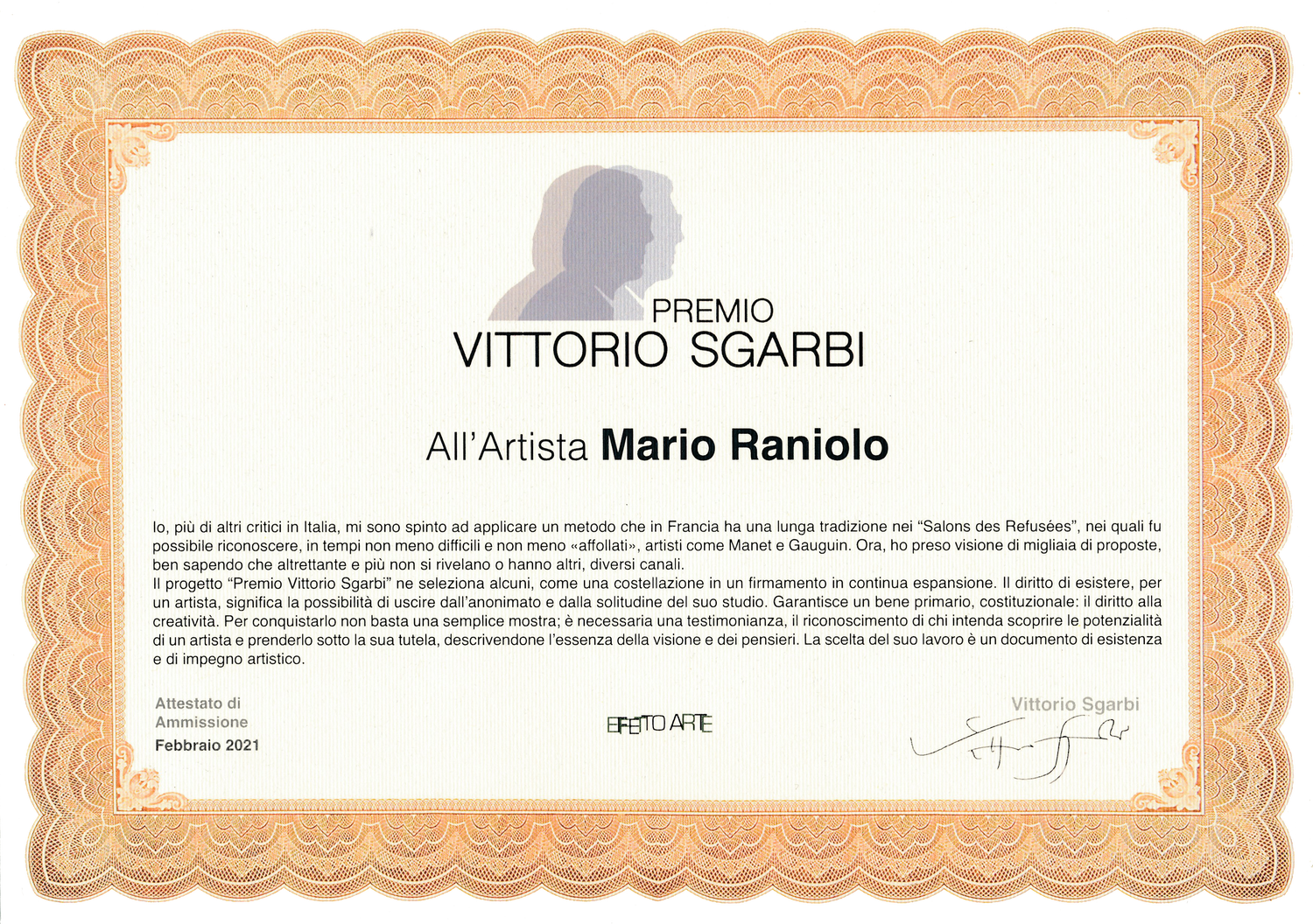 “Il Premio VITTORIO SGARBI. Il premio ha lo scopo di promuovere e sostenere l’arte contemporanea. Un riconoscimento unico nel suo genere, un autentico rave culturale che comprenderà varie sezioni dedicate alla pittura, alla scultura e alla fotografia”.