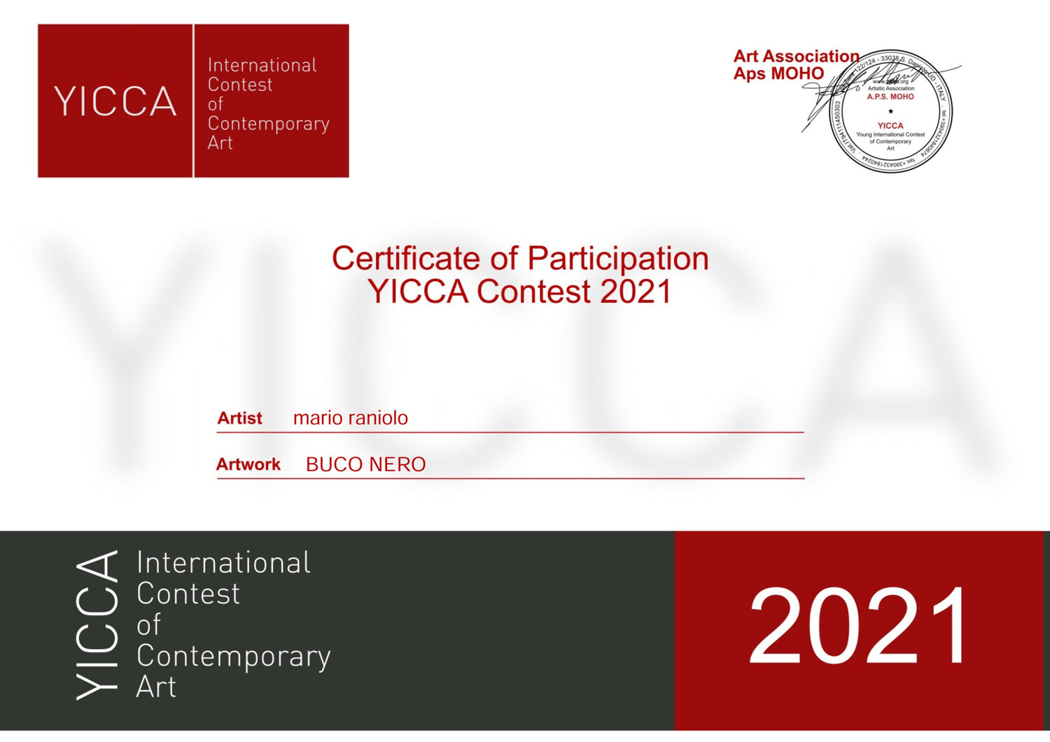"YICCA è un concorso artistico internazionale, rivolto a tutti gli artisti o gruppi di artisti, professionisti e non provenienti da qualsiasi paese del mondo“